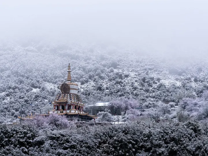 拍摄于藏东地区。桃花刚开却遇上了风雪。一种交错和相映的关系。到也有深意……