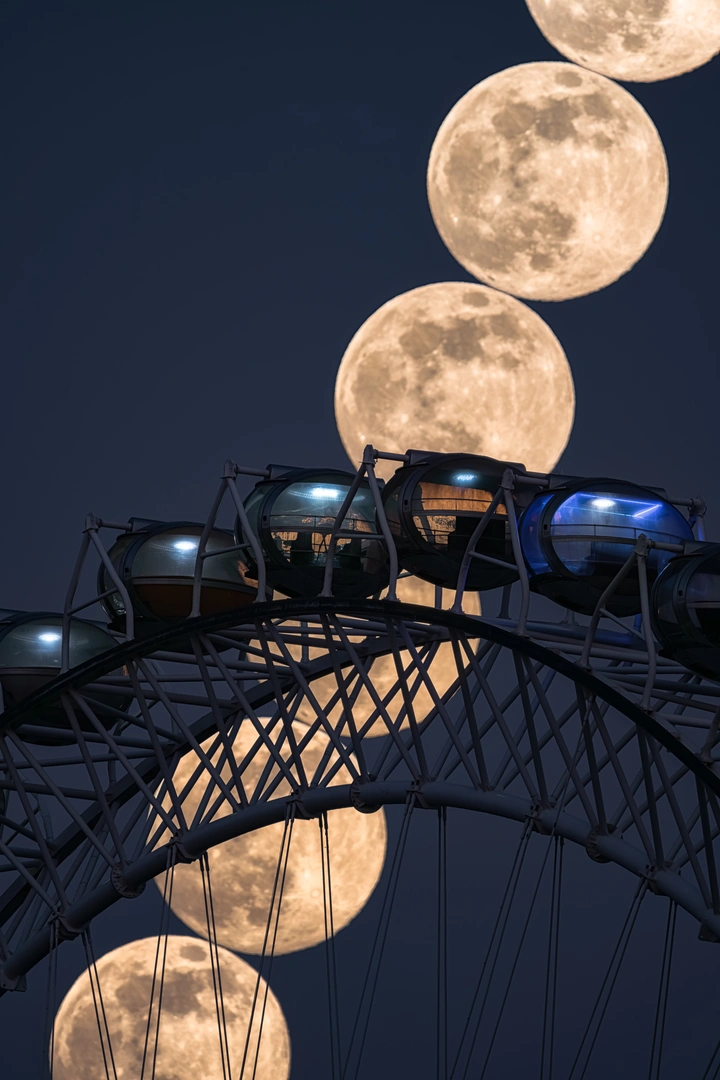 2025年最后一个超级满月降临福州晋安湖摩天轮