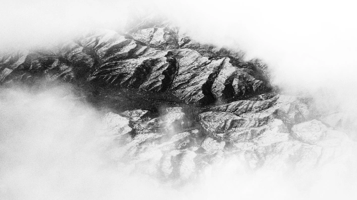 作品以 “脉络” 为核心,将镜头对准大地的原始肌理。用高对比度的黑白语言,剥离了地貌的色彩与具象,让山脉的褶皱、沟壑的走向与云层的流动,成为地球千万年演变的视觉密码。 画面如细密的掌纹,纵横的沟壑是大地的毛细血管,记录着风与水的千万次雕刻。这不仅是对地貌的纪实,更是一次对“生命本源”的视觉追溯——大地的脉络,正是地球的生命体征,每一道纹路都在诉说着关于时间与存在的答案。