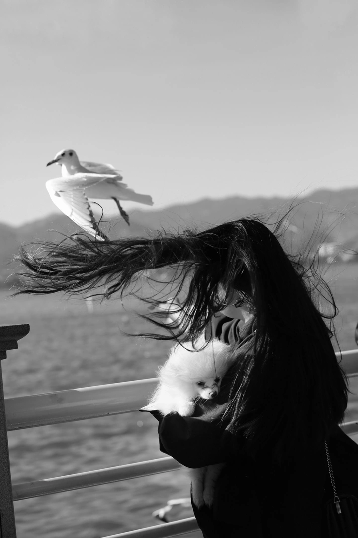 1张风把浪漫揉进发丝,鸥鸣撞碎在海面,而我的温柔,藏在怀里的小毛球里。