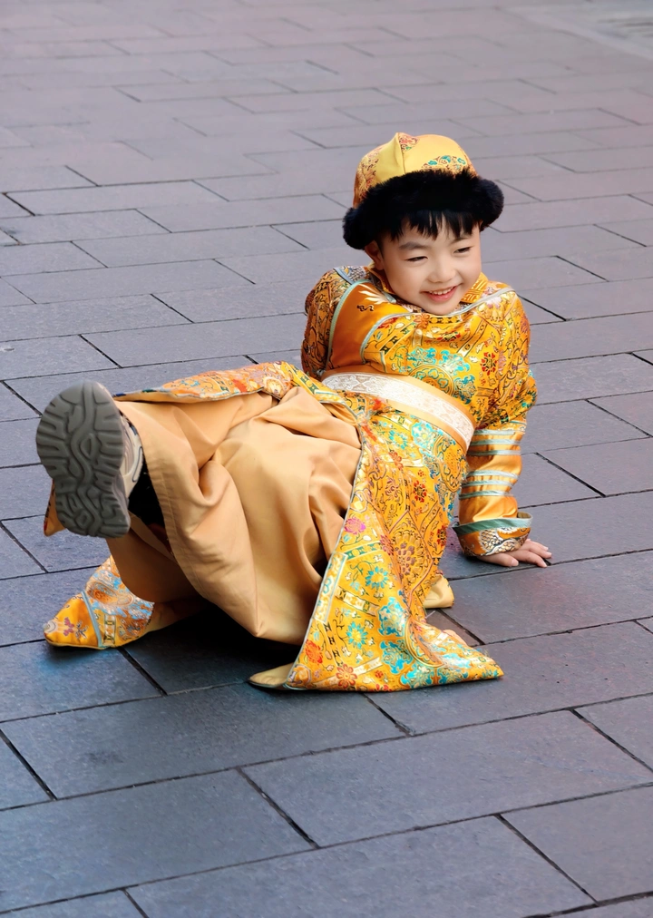 故宫里有很多穿满族服饰的人,男女老少都有。这不一位娘娘正在给