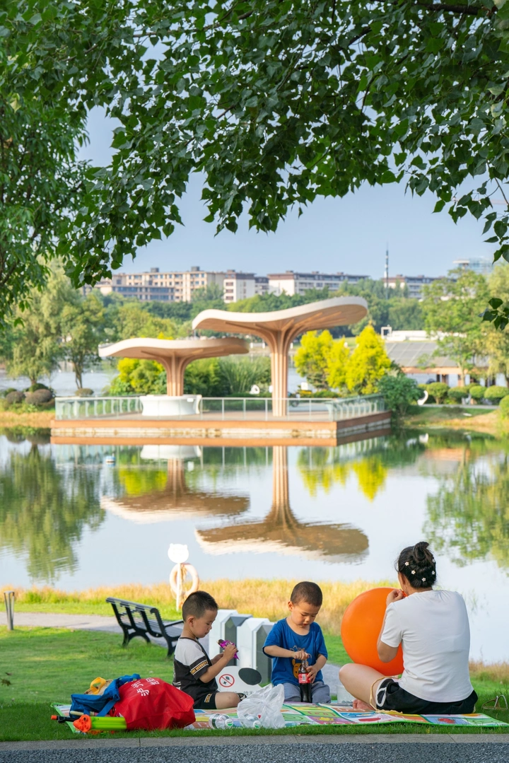 周末在公园里,妈妈带着小朋友在草坪上晒着太阳,做着游戏,这一刻幸福具象化了。