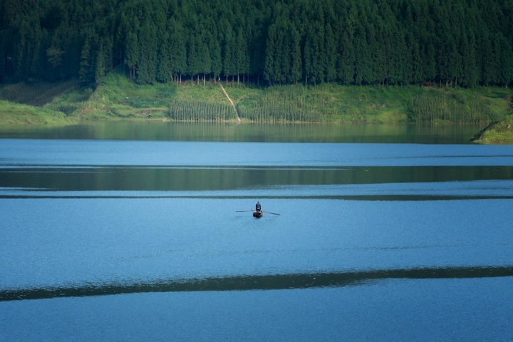 在山顶等着看日落,虽然当天日落没有看到,阴沉天气下,低头一看山脚,一对情侣骑着车路过小桥,赶紧来一张,记录下自认为浪漫的时刻