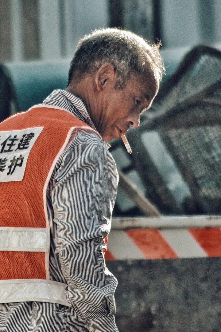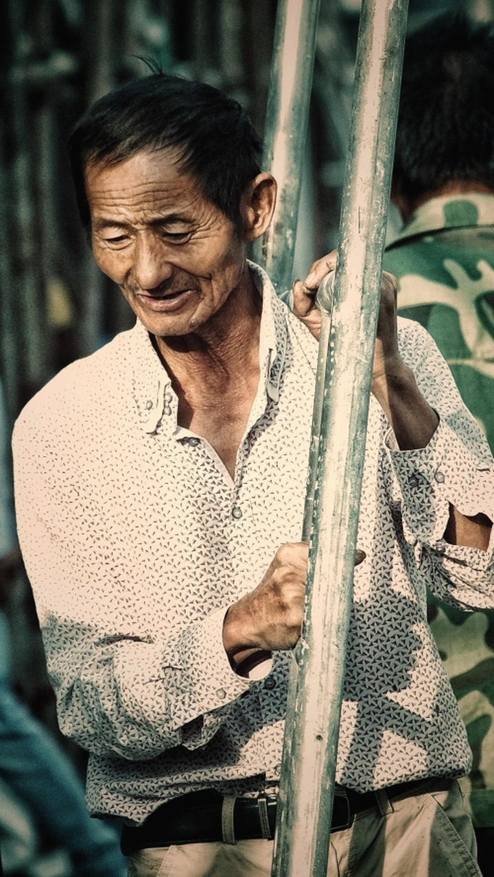 老街上一处古建工地,拍片时工人都在忙碌,对拍摄没多大的抵触,只是在说,安全帽戴戴好,安全绳系系好,勿要让人拍了去,有些汗颜,还是干扰了他们。以后从被拍者的角度多考虑,也是街拍中交流沟通的一课吧。