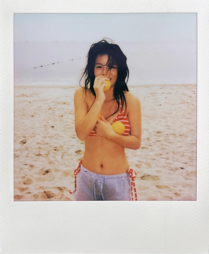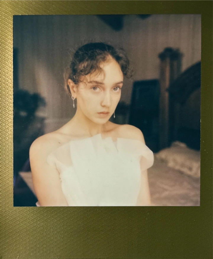 卷发梢沾着慵懒, 耳坠晃成帧里的细碎光, 是此刻被定格的、不慌不忙的温柔。 shot by 宝丽来