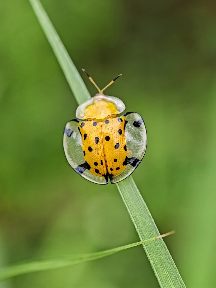 在老家的小路边上的小草丛里看到这只漂亮的星斑梳龟甲,赶紧拿出手机拧上微距头拍了下来。😜😜