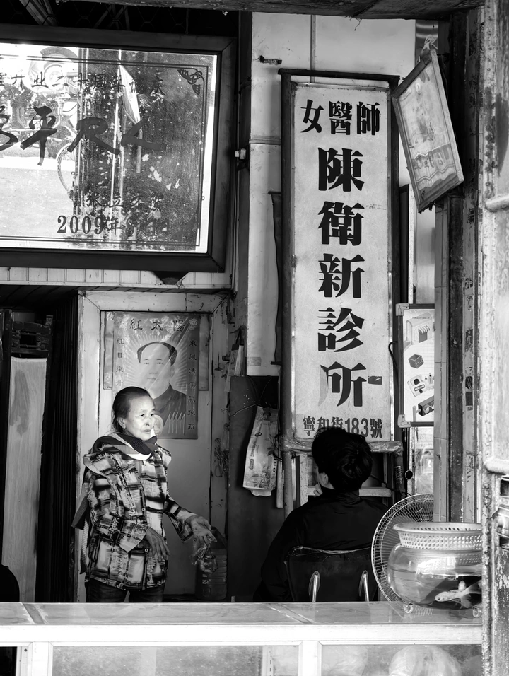 在城中村汕头市龙湖区陈厝合乡扫街过程中,发现了这家开了三十多年的老诊所。老医生正与年轻人在交谈中。