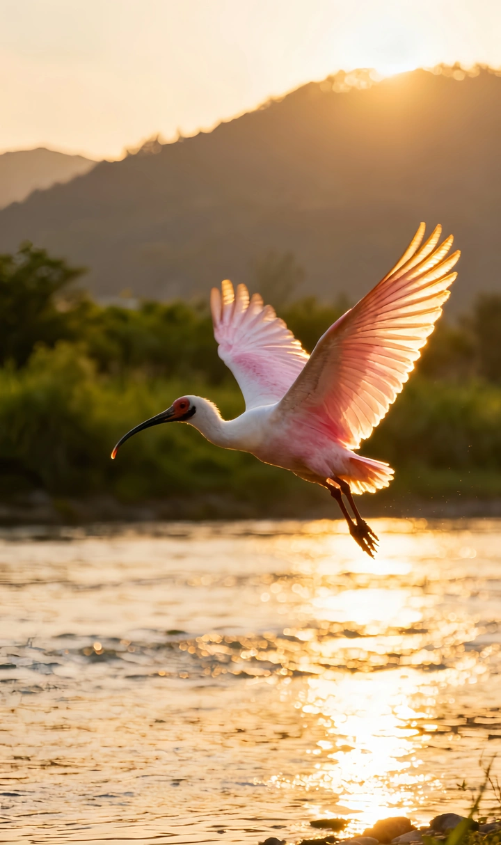 汉水的波光里, 一只朱鹮如古卷中走出的墨痕。 羽翼是晚霞裁下的绸缎, 喙尖悬着一滴将坠未坠的晨露—— 那是时间最轻的叹息。 仿佛整个山河都是它的枝桠。 渔舟划过时,涟漪漫过倒影, 它便成了水中浮动的朱砂痣, 烙在历史的肌肤上,隐隐作痛又灼灼生辉。