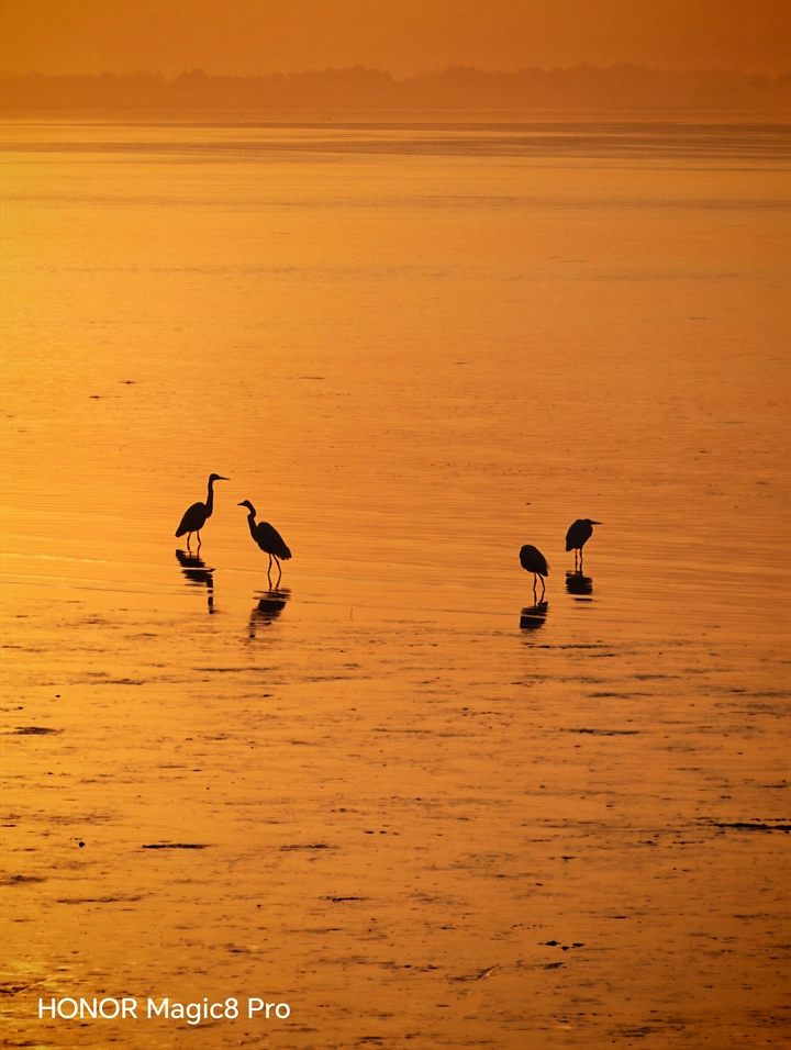 霞光静悄悄漏出湖面,泛起层层金光,像时光碎成的星河在流动。 几只飞鸟掠过水面,留下涟漪,也划破了寂静。 这一刻,世界仿佛只剩下光影与呼吸。 手机里的live图,是心跳与自然共震的证明。