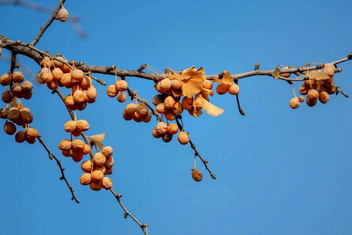 风把日头吹得更薄的时候,银杏果便成了枝桠间坠着的小太阳。 起初是藏在扇叶里的青疙瘩,秋意深一寸,就黄一分,最后裹着层半透的橙褐皱皮,沉甸甸坠成串——像谁把蜜渍的金杏裹了纸,随手挂在枝上晾着。风过枝摇,果串便碰出细碎的响,混着叶隙漏下的日光,落得满地都是暖簌簌的光斑。 老院的银杏总这样。小时候踮脚够,指尖刚碰着果壳,就被那股清苦的涩气呛得皱眉,偏又好奇那层皱皮下的软肉——得等霜降淋过,果皮在风里裂了口,裹着白浆的芯子才露出点甜香。邻里的阿婆会挎着竹篮来捡,说这果是“活肺的金疙瘩”,清水煮过涩味散了,咬开是糯糯的绵,温温的香,像把深秋的暖全揉进了果肉里。 如今再看这满枝的果,倒觉出些别的意思来。叶早落得差不多了,秃枝撑着蓝得发脆的天,唯有这果串是暖的锚点,把萧索的秋坠得扎实。路过的人抬眼望,总忍不住笑:这树倒会藏,把一整个秋天的甜,都封在这皱巴巴的壳里了。 风又起时,一颗果子坠在脚边,裂了道细缝。蹲下来捻起,指腹沾了点浅黄的浆,凑近闻,是苦后回甘的香——像深秋本身,裹着点凉,却藏着攒了一季的温柔。抬头时,枝桠上的果串还在晃,日光落下来,把每颗皱皮果都镀得发亮,像谁在风里。