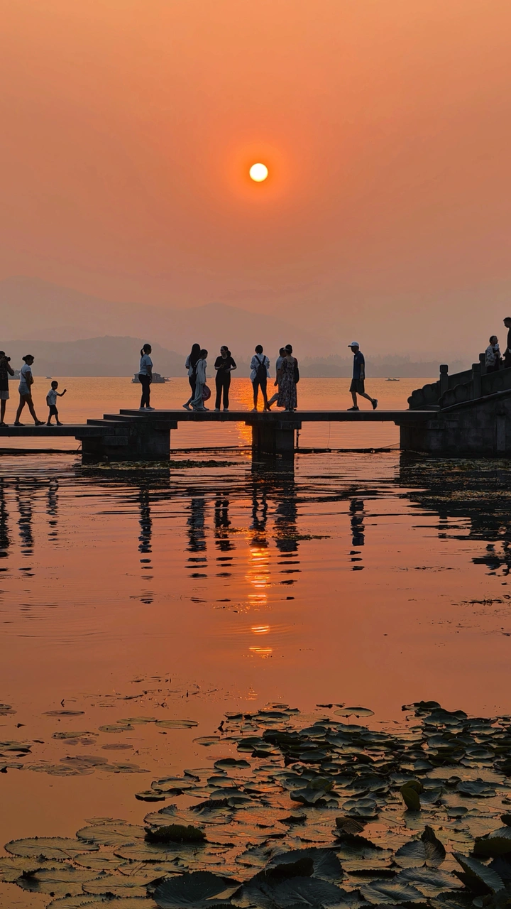 西湖的暮霭,是大自然最温柔的调色师。当橙红的夕阳悬于天际,把整个湖面晕染成流动的金箔,几叶扁舟在波光里缓缓摇曳。船夫持竿的剪影在余晖中定格,仿佛一幅古朴的水墨画被赋予了生命。远处的山峦在暮烟中晕成淡紫的轮廓,与湖上的舟影、天上的金日相映成趣。这一刻,时间仿佛随涟漪放缓,所有的喧嚣都被滤去,只留下西湖暮舟独有的静谧与诗意,在暮色里悠悠流淌。