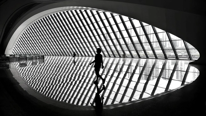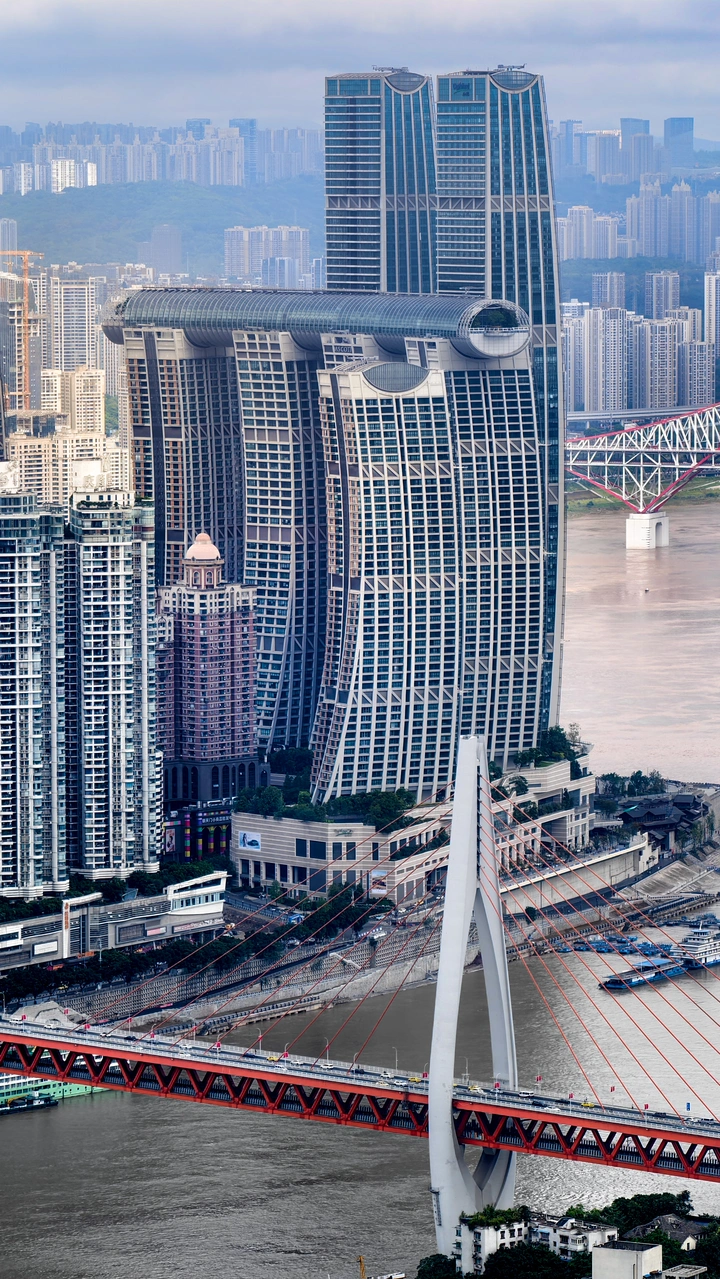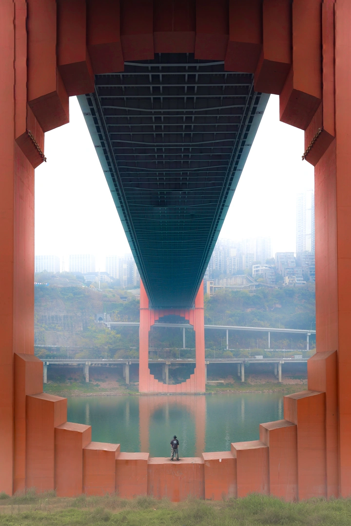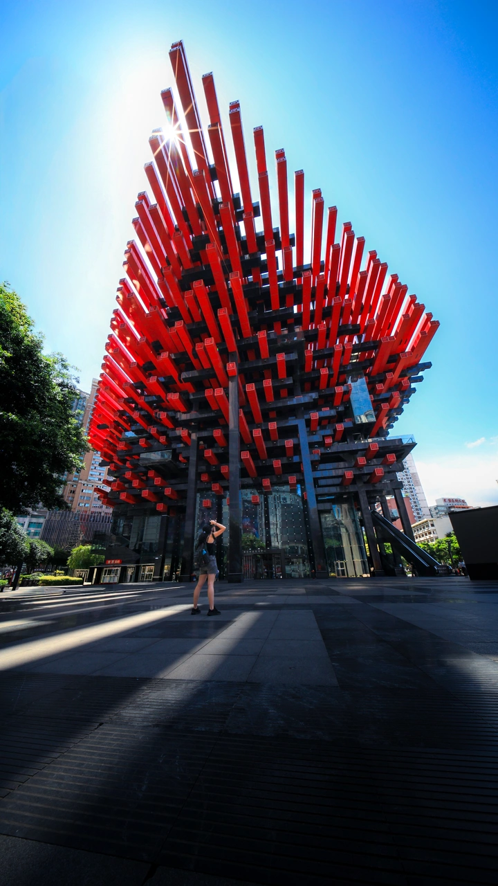 在拍摄重庆国泰艺术中心时,一位外国友人突然入镜,同样在拍摄这个造型独特的建筑,这也许就是摄影人的共同点,喜欢寻找不一样的角度来展现目及所至的美。