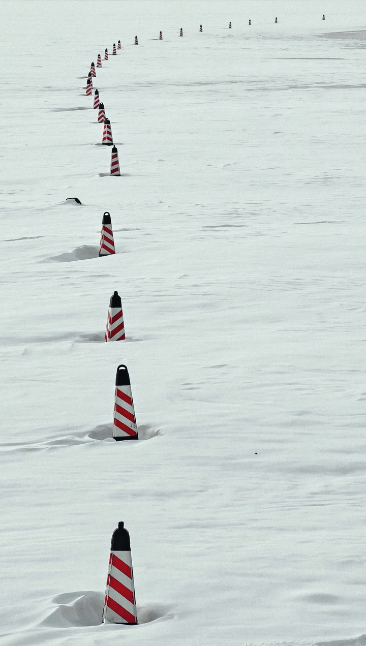 2025年1月辽宁的一场大雪如期而至,别看厚厚的积雪遮盖了冰面,但湖面上仍有一些未结实的脆弱地带;望着一个个交通锥排列成线,就如同勇敢的战士寸步不移,不畏严寒依然坚守岗位确保一方安全!