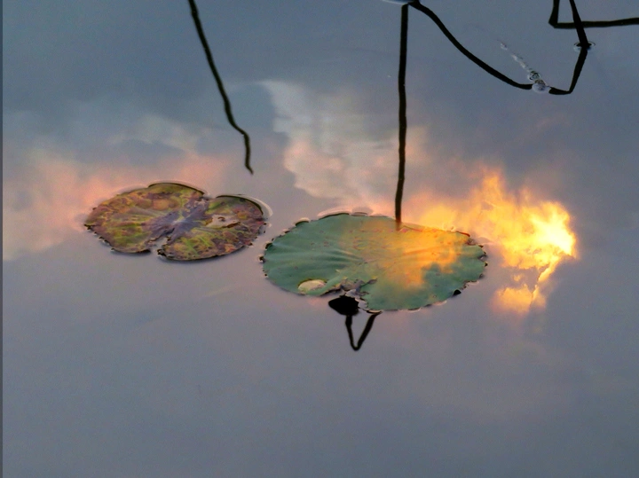 该图片由两张图片叠加的双重爆光而成的一张残荷图。