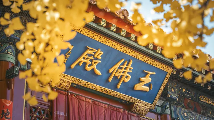 秋阳裹着银杏的金,漫过古寺的青瓦红墙。绿琉璃檐角坠着光阴,朱墙上“佛”字沉在光影里,铜狮凝着岁月的温,香雾绕着塔铃轻晃——这一季的禅意,是黄与红的撞色,是烟火与古意的共生,连风过处,都裹着几分不慌不忙的温柔。