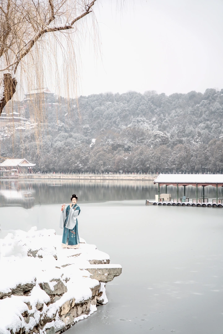 红衣是檐角坠不住的暖,踩碎雪径时,连风都软了三分; 青衫是冰湖冻不僵的柔,执扇垂眸处,连山影都轻了半寸。 同一场雪里,两种颜色,都是时光不肯辜负的诗意。