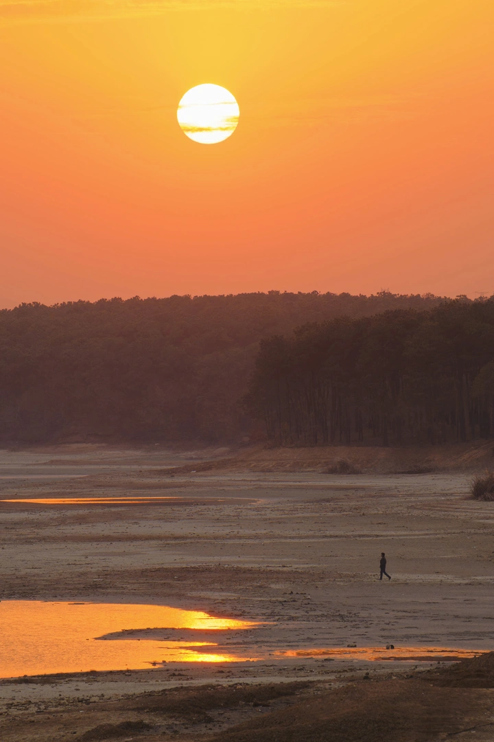河面上拉长的夕阳,跟着钓竿一起收回来,就带着这份宁静赠予家里的爱人吧。