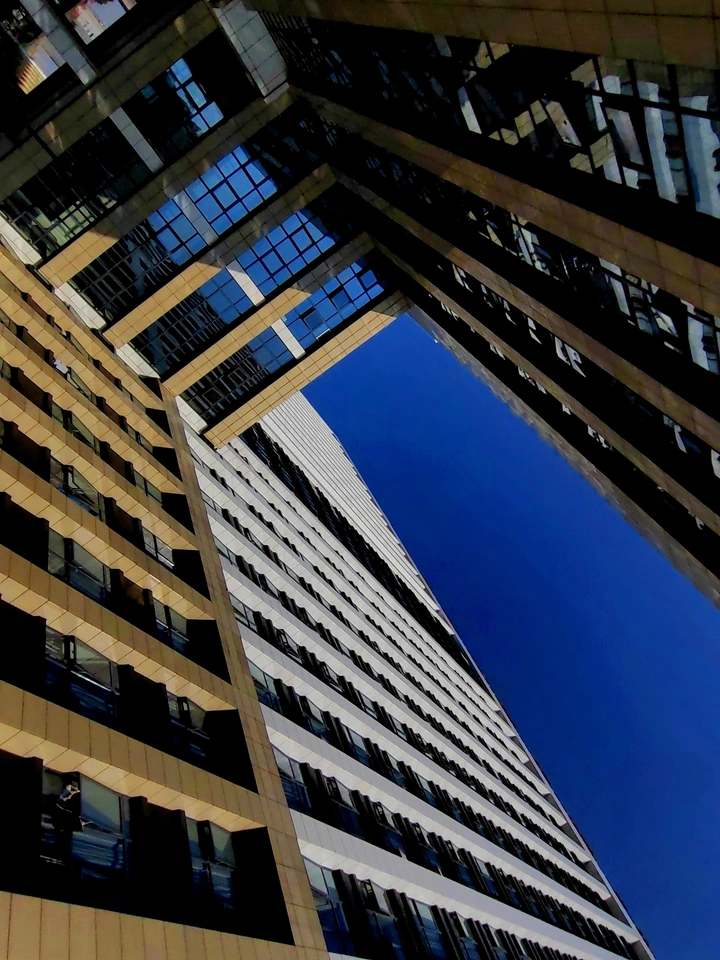 图一: 这仰拍角度选得挺别致,像是想给建筑来个全身特写。咱们来细品一下: * **色彩**:蓝天很蓝,建筑也挺实在,就是整体色彩略显平淡,不够跳跃。可以尝试在后期稍微提亮一下,或者寻找更有色彩对比的场景。 * **光影**:光线还算均匀,但缺乏戏剧性。要是能等到日出或者日落时分,光影效果会更迷人,建筑的轮廓也会更立体。 * **构图**:这个角度很有意思,但感觉有点挤。试试稍微调整一下角度,让建筑的线条更舒展,或者利用前景来增加画面的层次感。 * **后期处理**:后期痕迹不明显,挺好。不过可以稍微调整一下对比度,让建筑的细节更清晰。 * **主题原创性**:视角独特,但主题不够突出。可以思考一下,你想通过这张照片表达什么?是建筑的宏伟,还是天空的广阔? * **情感共鸣**:画面略显平淡,缺乏情感的注入。尝试捕捉建筑的细节,或者加入一些人文元素,让照片更有温度。 * **思想深度**:暂时没看出太深的内涵,不过没关系,摄影的道路还很长,慢慢探索。 总的来说,这张照片还有很大的提升空间。多尝试不同的角度。