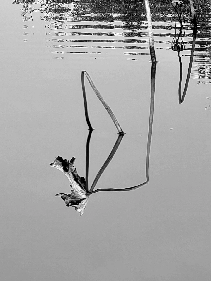 残荷轻舞寒池畔,倒影婆娑映水边,禅意悠悠入心田。