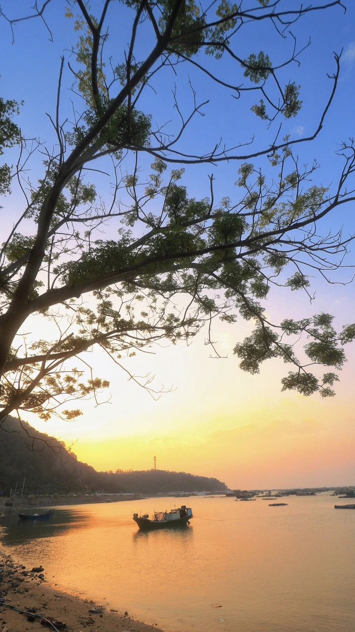 赴一场阳江海岸的落日之约,礁石嶙峋,霞光温柔,所有的美好都定格在这帧画面里。