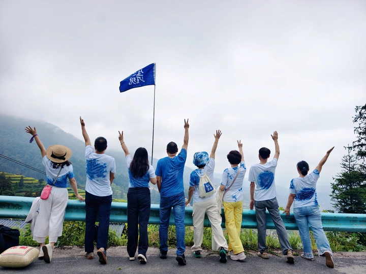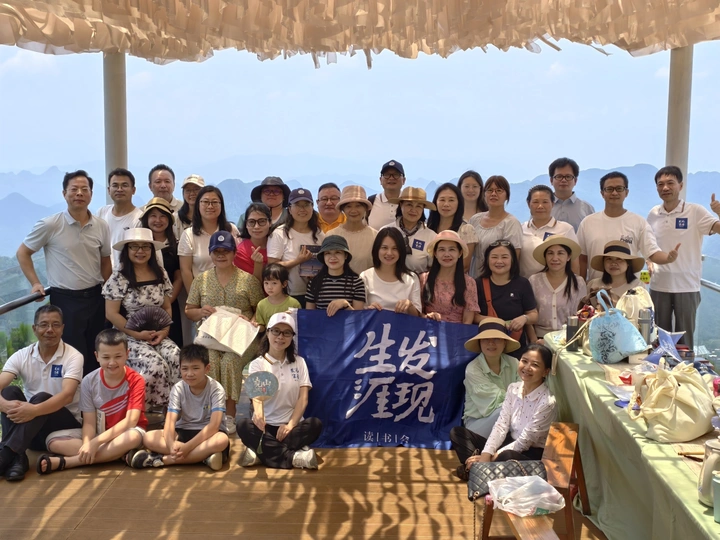 在肇兴侗寨的石板路上,发现生涯读书会的伙伴们留下了一串串快乐的足迹。青砖黛瓦的侗族建筑在青山绿树间静静伫立,大家穿着统一的蓝白服饰,举着“发现生涯 读书”的旗帜,在古老的石阶上欢笑合影。手中的“肇兴”道具仿佛在诉说着这片土地的故事,每一步行走都充满了探索的喜悦,每一次驻足都有思想的碰撞。这不仅是一次走读,更是一次心灵的旅行,让书籍的智慧在山水间生根发芽,让友谊在欢笑中愈发深厚。未来,我们将继续在书页与风景中寻找答案,让每一次相遇都成为生命中温暖的印记。