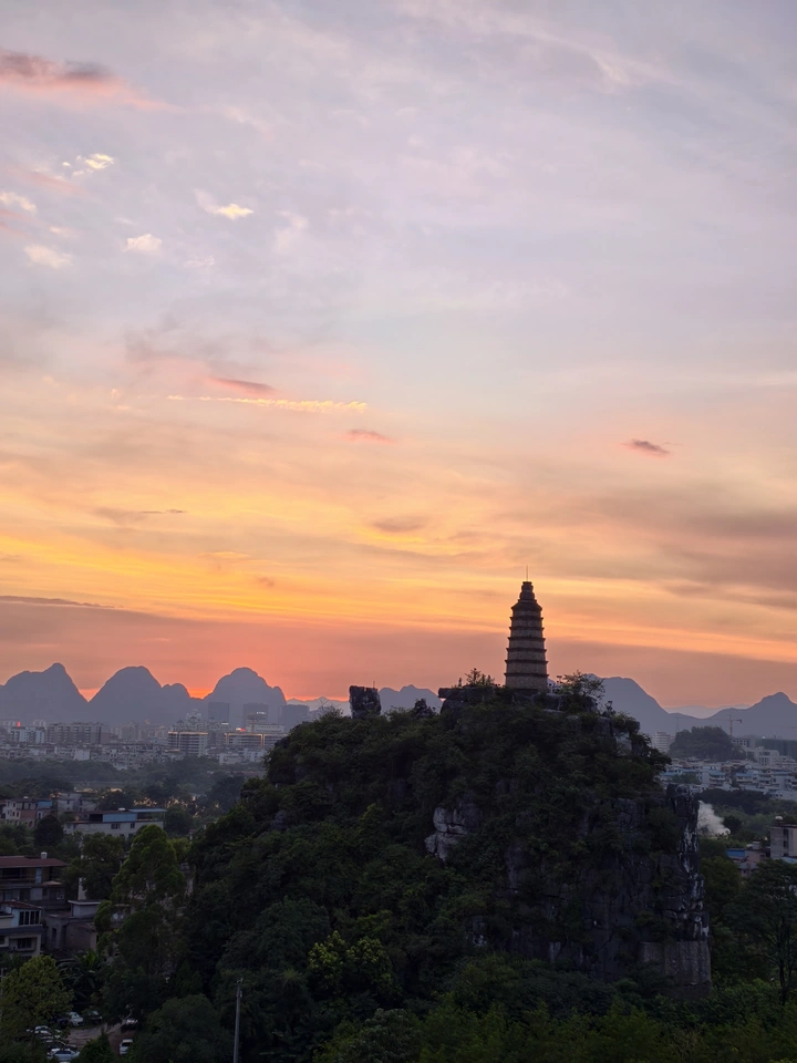 暮色给云絮镶上碎金边,山峦默数着光影的褶皱。城市轮廓在晚风中沉下去,天地间只剩这抹温柔张望——原来黄昏是天空写给大地的情书,连沉默的山都成了落款。