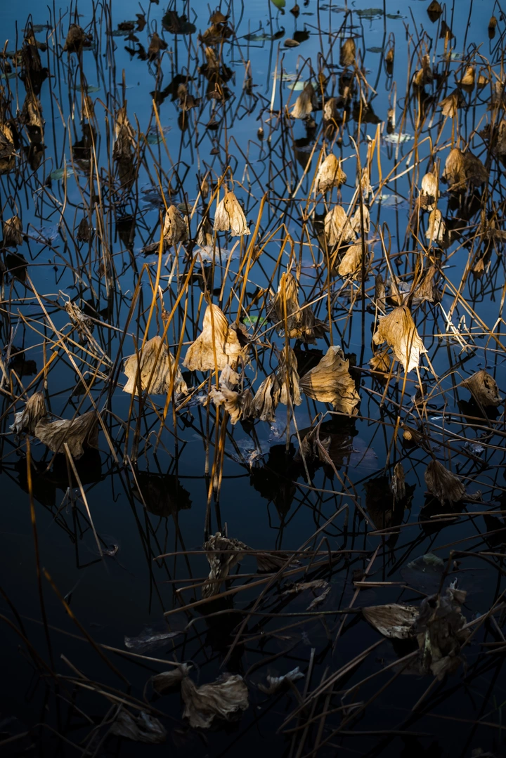偶然路过一荷塘,众多荷花让眼睛应接不暇, 唯独这一枯一荣,让我感觉到了生命的交替。
