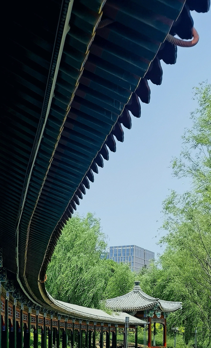 檐角翘出晴空,琉璃裹着日光烫成金芒,斗拱层叠如鳞,驮起半片宫阙的沧桑。风过时,脊兽似要跃入云里,把岁月都晾成檐下的光影绵长。