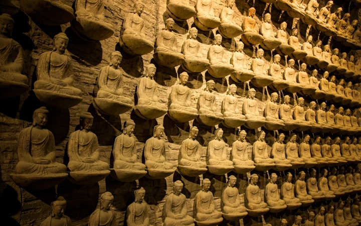 千佛山,济南三大名胜之一,古称历山,因隋代开凿佛像满壁而得名,是一座承载着千年佛教文化与齐鲁人文的灵秀之山。 在这片山海之间,佛意与城韵在此叠印成诗。这里有弥勒大佛的金光万丈,在苍松翠柏间笑看尘世;有古佛造像的静默千年,于洞窟岩壁上镌刻岁月的禅痕;更有观音造像的慈悲端详,在光影交错中传递亘古的温柔。山间亭台楼阁与摩崖石刻相映成趣,既藏着齐鲁大地的人文底蕴,又在登顶的刹那,让现代济南的都市轮廓与古意山林撞个满怀。 千佛山的美,是自然山水与人文遗产的对话,是历史厚度与城市活力的共生。每一处镜头的定格,都是千佛山在光阴里的一次呼吸 —— 既有佛教文化的深邃沉淀,又有泉城济南的烟火温度,邀你共赴这场山、佛、城的诗意共鸣,读懂这座山跨越千年的精神与风貌。