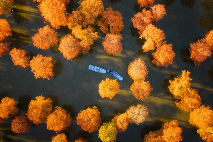 最近的武汉昼夜温差大,气温在10℃上下玩起过山车。但天气越冷,树叶越红!位于新洲区涨渡湖的“水上森林”变色进度过半,即将迎来最美时刻,它们像一棵棵火炬,把冬天照得热烈明媚。