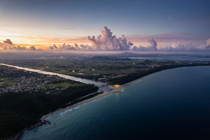 坐在环山护栏上吹着海风 等着蓝调来临 海港和夏夜一样温柔