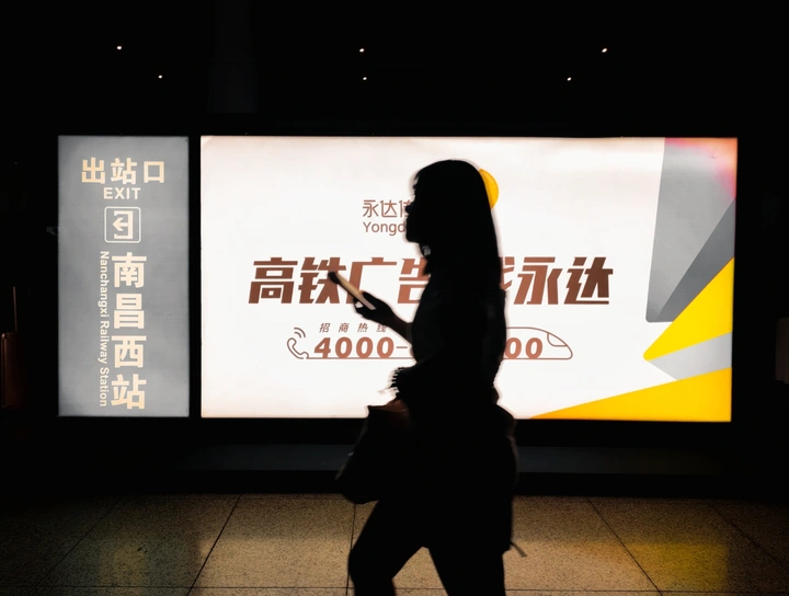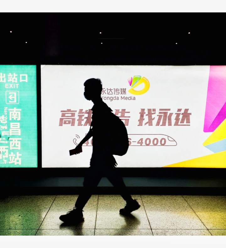 人生旅途步履匆匆,刚下南昌火车西站,在广告牌前,抓拍行走的行人,手机vivo拍摄,拍摄时间2023年6月19号