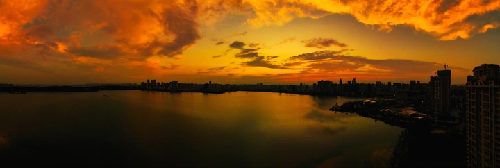 2024年8月19日武汉预报有中雨,到了晚上6:00左右降雨停止,天空云层厚度也慢慢减弱,近7点时西落的太阳也开始露面,升空大疆无人机在7:04分拍下了这张晚霞,请各位老师多指教!