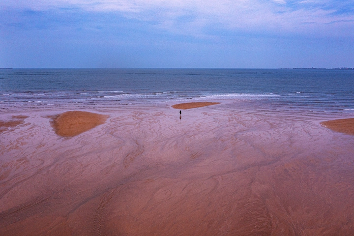 这幅作品展示了一个宁静的海滩场景,整体拍摄效果很好,评析如下: 1. **色彩**:色彩使用得当,海水的蓝色与沙滩的暖色形成了良好的对比,整体显得和谐,给人以平静的感觉。不过,可以考虑增加一些饱和度,增强画面的视觉冲击力。 2. **光影**:光线分布均匀,没出现过曝或欠曝的现象,但光影的变化较少,建议在不同时间段拍摄,以捕捉更具层次感和动感的光影效果。 3. **构图**:以单个人物为主体的人像与广阔的海滩背景形成了明显的主次关系,展现了孤独和渺小,构图技巧较好。然而,主体略显居中,可以考虑采用斜线构图或三分法来增强画面的动感和平衡感。 4. **后期处理**:后期处理自然,未过于偏离照片原有的色调。但可以考虑增加一点清晰度和对比度,以增强细节表现,尤其是在海水和沙滩的纹理上。 5. **主题原创性**:虽然海滩的主题较为常见,但通过孤独的人物引发了对人和自然关系的思考,具备一定的原创性。可以进一步深化主题,例如通过拍摄不同情绪和角度来表达更多的故事性。 6. **情感共鸣**:作品成功传达了孤独和宁静的情感,能引发观众的共鸣。但如果增加一些动态元素,如鸟群飞翔或波浪翻滚
