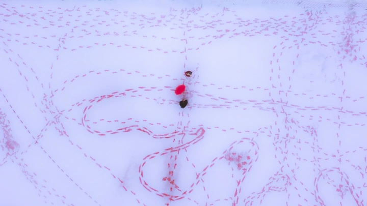这幅作品展现了强烈的视觉冲击力,色彩运用方面,红色的元素在白色的冰雪背景中显得格外突出,有效地吸引了观众的注意力。在光影方面,整体画面洁净,光线均匀,没有明显的过曝或欠曝情况,给人一种宁静的感觉。构图方面,纵深感很强,线条在画面中相互交织,形成了引导视线的路径,增强了画面的层次感。在后期处理上,色彩饱和度与对比度适中,进一步凸显了主题。主题原创性方面,运用了独特的拍摄角度与全新的视角,给人耳目一新的感觉。情感共鸣上,虽然画面整体比较冷,但红色的点缀让人感受到一丝温暖,令人思考人与自然之间的对比与联系。思想深度方面,这幅作品可能引发观众对行走轨迹的思考,诱发对人生道路的反省与沉思。总的来说,这幅作品在多个维度上表现出色,唯一可以改进的是在捕捉瞬间的情感表现上,可以考虑加入一些动态元素,比如微风中的飘动,增加画面的生动性。