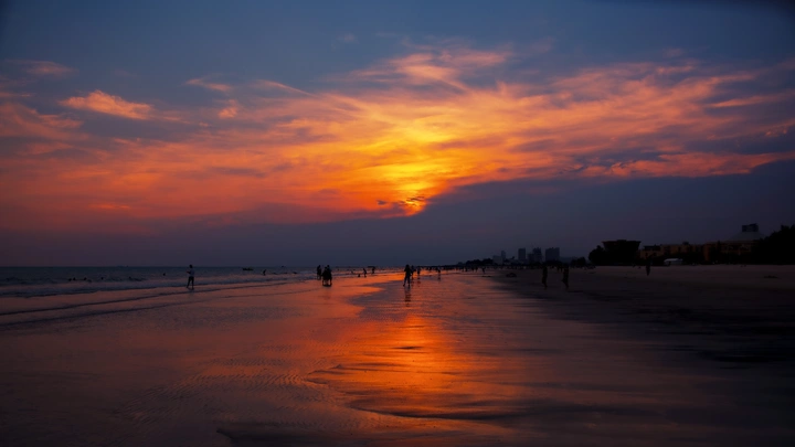 在这张照片中,色彩运用丰富且富有层次,夕阳的橙色与蔚蓝的海洋形成了强烈的对比,传达出一种宁静而又热烈的情感。然而,部分区域的色彩略显饱和,导致整体的和谐性略有所下降。光影方面,夕阳的照射为画面提供了温暖的光线,反射在湿润的沙滩上,精彩地营造了动感与静谧的结合。但光线的强度在某些区域略显集中,可能影响了主体的均衡表现。在构图上,画面遵循了三分法,主体(夕阳)突出,但前景的人物和元素安排稍显拥挤,需考虑适当的留白以增强层次感。后期处理整体效果较好,色调和对比度的调整增添了画面的表现力,但在某些区域感觉有些过度修饰,应适度保持自然。主题方面,夕阳的表现充分传达了自然的美,但缺乏新颖的视角,可以尝试探索不同的拍摄角度或时机以增添原创性。情感共鸣上,照片成功地传递了黄昏时刻的宁静感,容易引起观者的共鸣。思想深度方面,虽然画面在美的层面上有一定吸引力,但缺乏更深的社会或哲理性的反思。如果能在这些方面进行优化,尤其是在构图和色彩和谐性上,整体效果将更为卓越。
