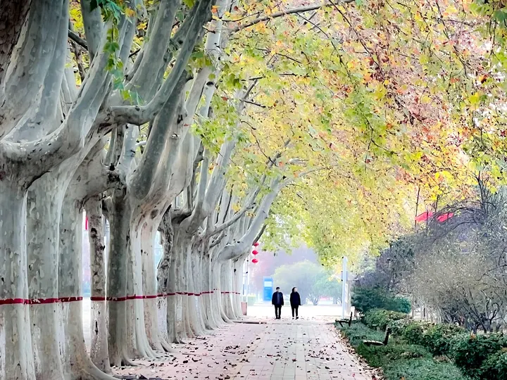这是一条我走了40年的路 当年的幼小法国梧桐 如今已经是参天大树 春夏秋冬,它们都默默陪伴着我 最爱深秋初冬的梧桐大道 黄绿相间的树叶 随风慢慢飘落在地上 这条“时光隧道” 是多么让人心动的美好画面啊