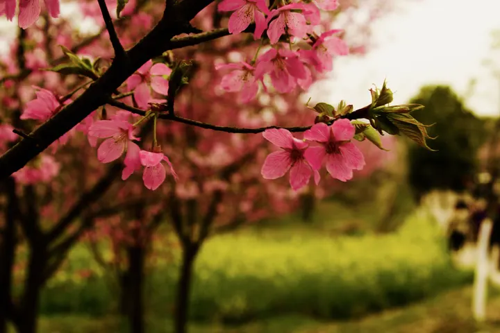 2024年3月16日摄于湖北襄阳松树坡樱花节,千亩河津桜缤纷绽放。
