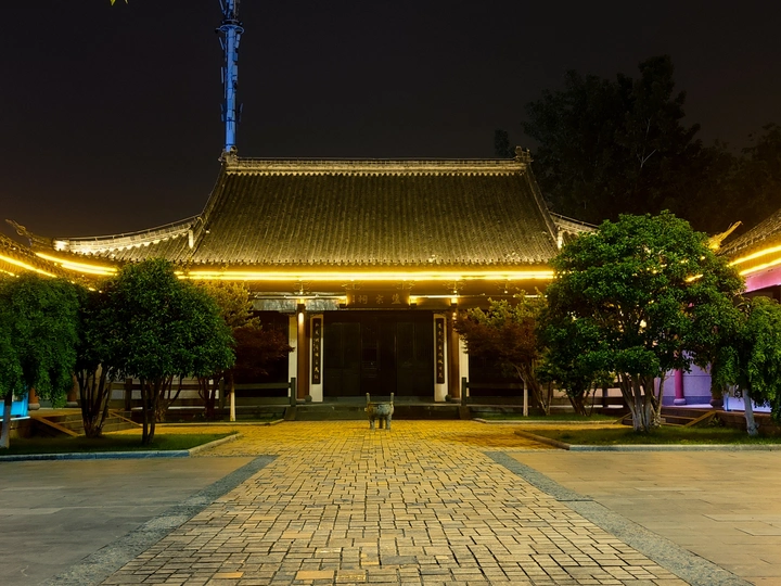 拍摄于盐城市盐镇水街的仿古建筑,在夜晚灯带的映衬下耀眼生辉金碧辉煌,展现了中国传统建筑之美。