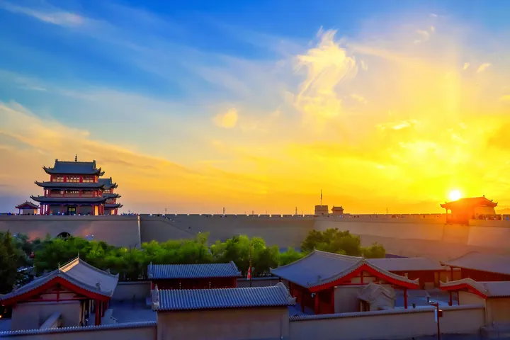 1张秋意黄昏中的城市一隅:落日熔金,飞鸟归林!