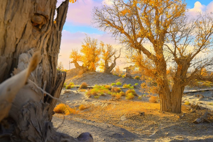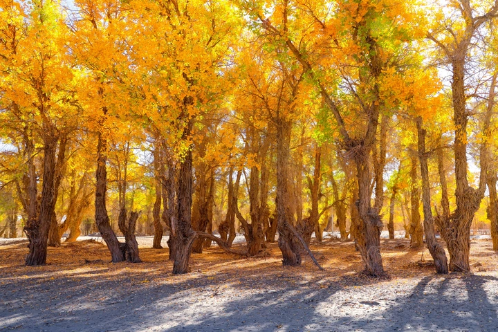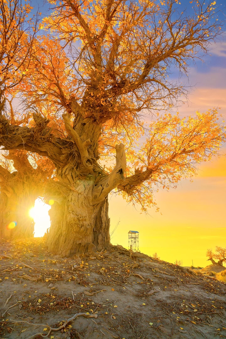 1张沙漠胡杨,在金黄与湛蓝间书写生命传奇!