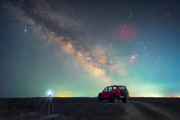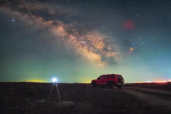 35mm达坂城方向银河接片:效果比我预期的要差 35mm并没有比14mm带来惊喜的细节和色彩 可能是光污染还有点重 另外就是2.8光圈镜头为了保证一个能用的信噪比接片效率太低了 之后再研究