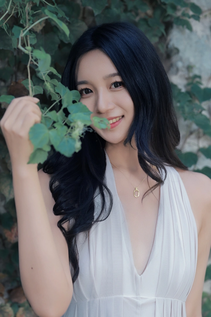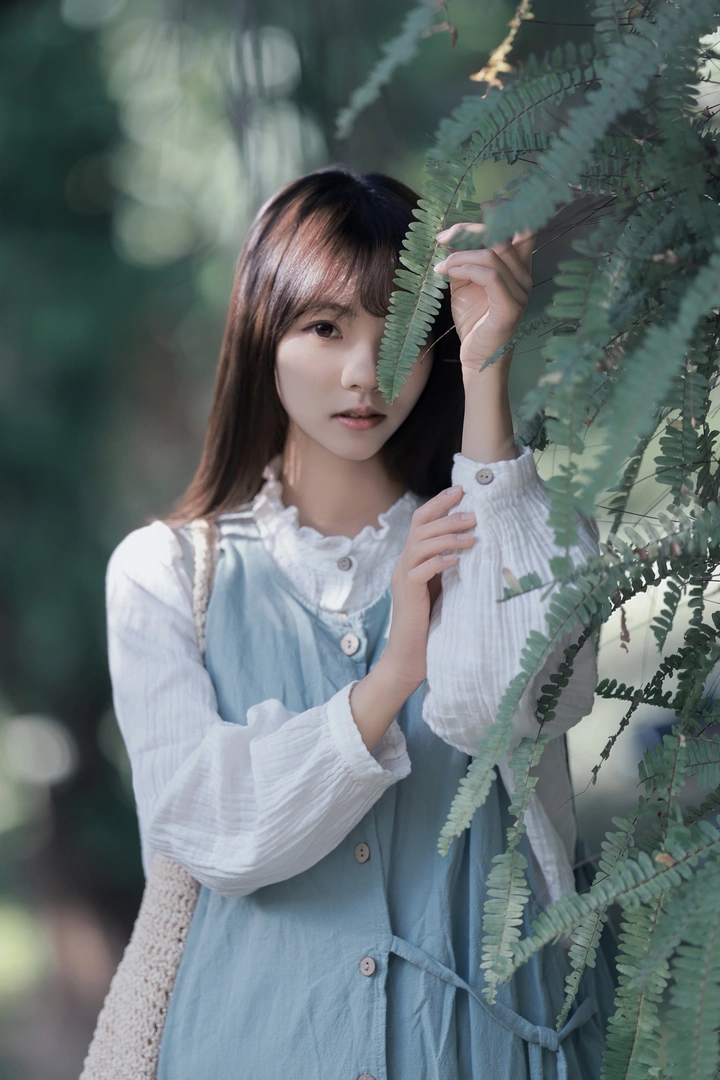 光斑从叶隙漏下来,在裙边织成细碎的网,树影轻轻晃,连呼吸都裹着森林的香。