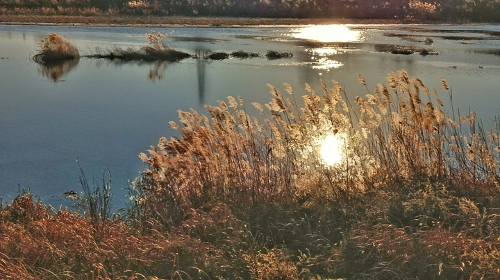 周末下午来到河边,正好看到夕阳将落未落,拍下了这些景物