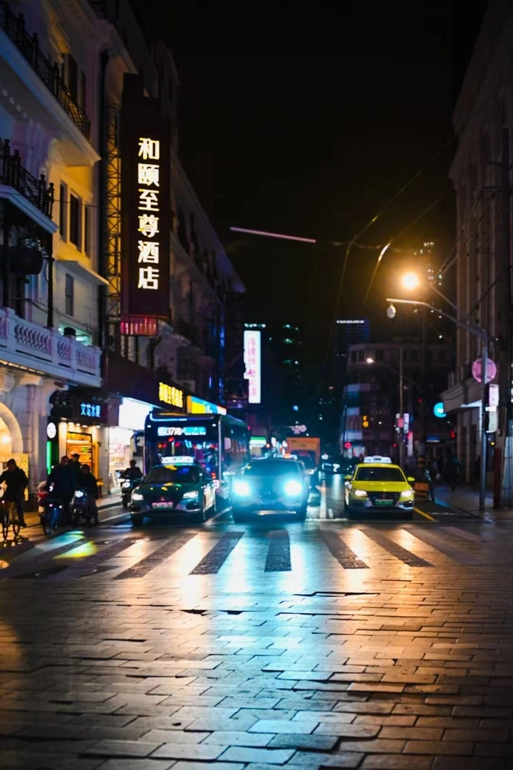 夜街静谧,昏黄灯光洒落,映着飘零残叶与行人身影。路旁机车静卧,远处车灯明灭,似述夜事。街角黄牌警示,两旁楼阁于暗夜默立。此街如长卷,夜幕垂落,故事悄生,行人匆匆,或愁或喜,皆为夜街之墨绘就无名之诗。