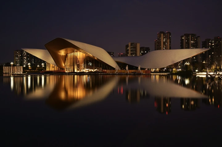 三十秒长曝,把成都的夜摁进水里时,突然看见美术馆在倒影里成了双——就像去年冬天第一次来,馆里暖光漫出来,映着水面颤巍巍的,我蹲在岸边等了快半小时,直到长曝光把建筑和倒影焊成对称的梦。现在再看,才觉出这哪是拍建筑,明明是把成都的艺术气,都泡进了锦江的黑丝绒里。