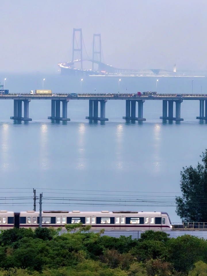 大雾天气下,拍摄深中大桥、高速公路、城市轻轨,三者同框,尽力了。