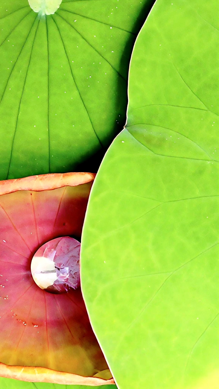 一年四季的荷叶:“春之萌芽、夏之繁盛、秋之静美、冬之坚韧”。唯有绿荷红菡萏,卷舒开合任天真!