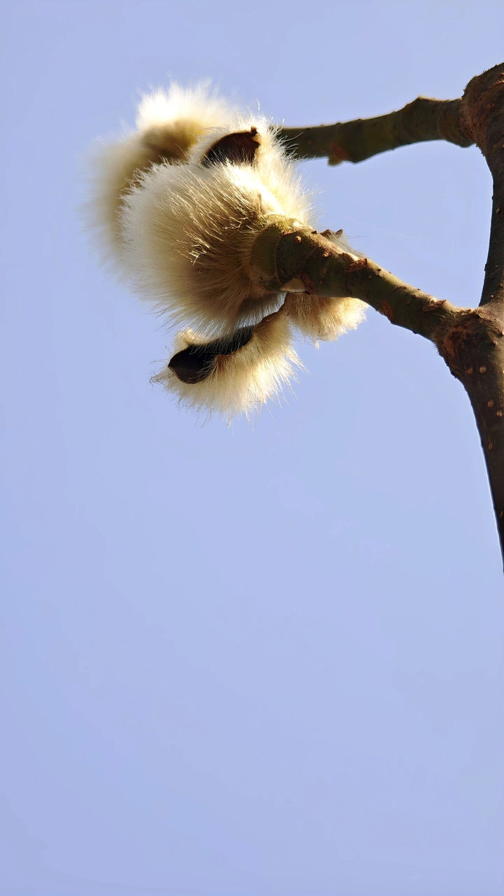 东风吹起木兰香,辛夷花白柳梢黄。花蕾“辛夷”也是武当木兰的花苞,呈卵形,外面包裹着密密的黄色绒毛,柔软且带有光泽,可保护幼嫩组织免受低温、虫害侵袭。是植物适应环境自然演化的结果,玉兰花苞的出现常被视为“春的气息”,象征着希望与新生!