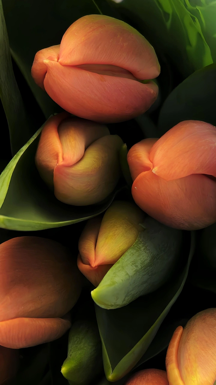 郁金香“橙色皇帝”,花苞形态饱满,热烈而不张扬。橙色象征着:“活力、温暖与喜悦”。